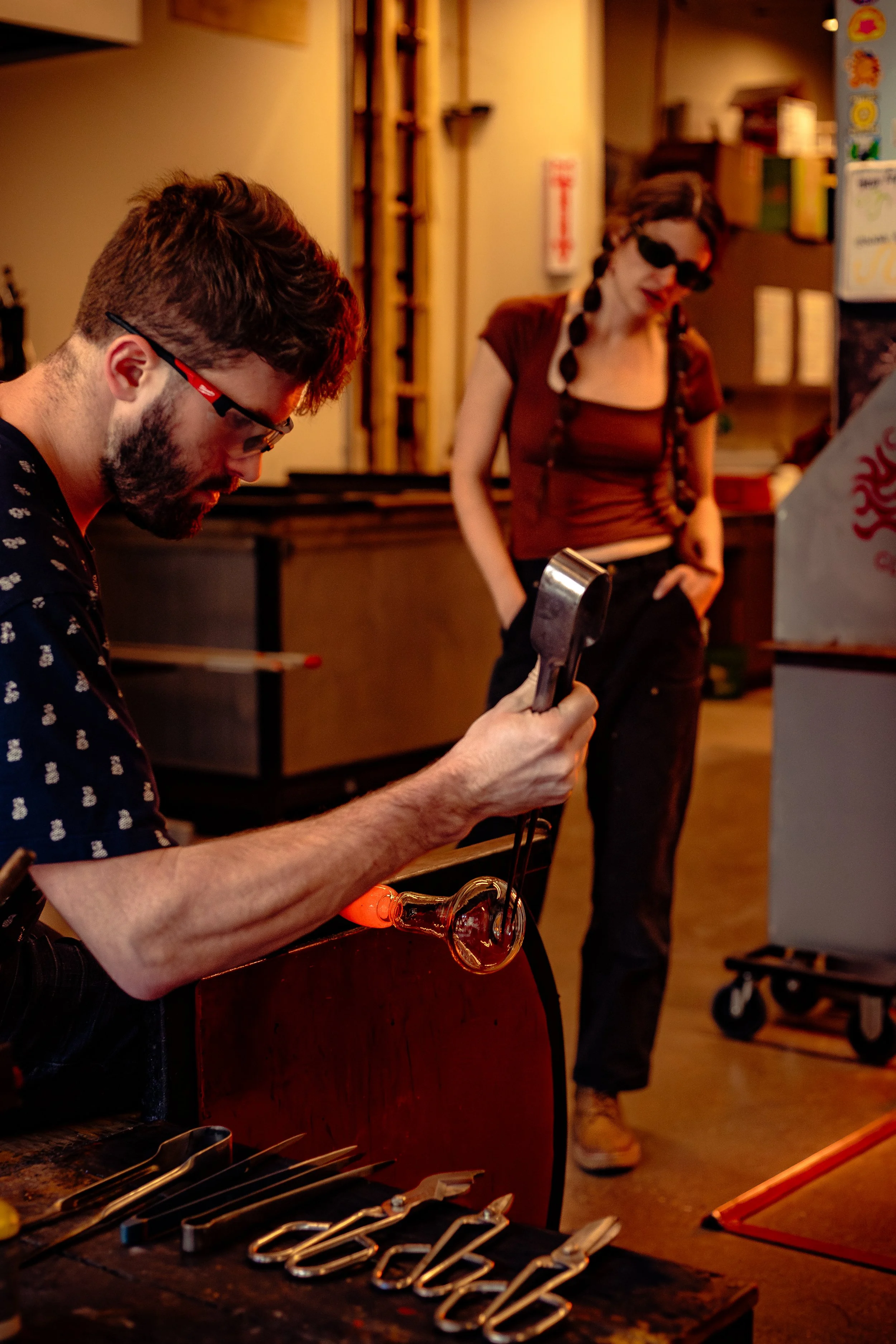 Skyler Larson makes glass sculpture informed by his interest in mathematics. Skyler started working with glass while earning his associates at Anoka Ramsey Community College, and has continued to study glass coast to coast as he completes his Bachelor of Science in Mathematics with a minor in Product Design at the University of Minnesota. His work has been featured in the Minnesota Star Tribune, the Minnesota State Fair Fine Arts Exhibit, and Foci Minnesota Center for Glass Art’s exhibition gallery. He is known in the glass community for his fearless experimentation and inventive techniques. He’s currently developing a series of hanging sculptures to be displayed in the Osborne 370 building gallery in St, Paul.